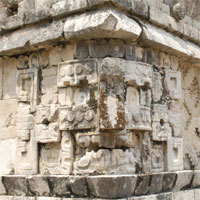 Chichen Itza is the major icon of the Mayan pyramids. This pyramid dates back more than 1,500 years and continues to be one of the most controversial, studied and visited ruins of the Mayan world. In the Mayan language it means ‘mouth of the well for the Itza’s’ [the tribe that once inhabited the area]. The famous ball court, with its mysterious ring hoop, and perfect acoustics is one of the oldest construction sites in the zone, dating to 864 A.D.